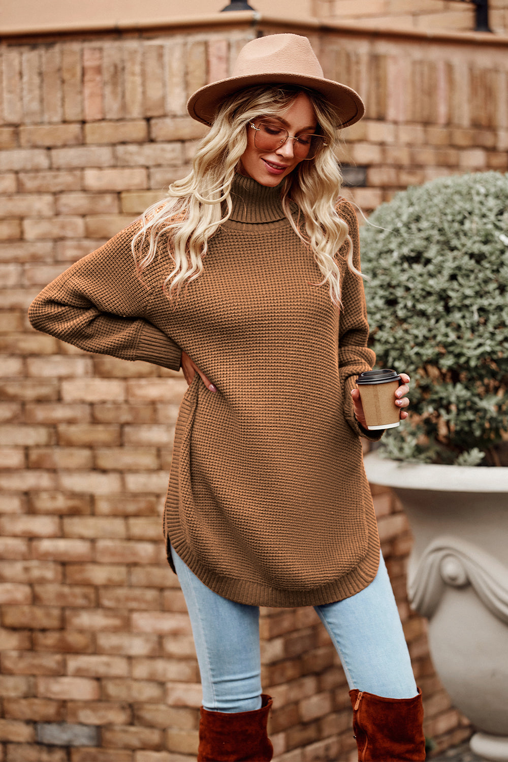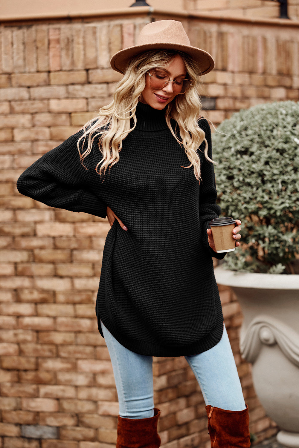 Irregular Hem Side Split Loose Pullover Turtleneck Sweater