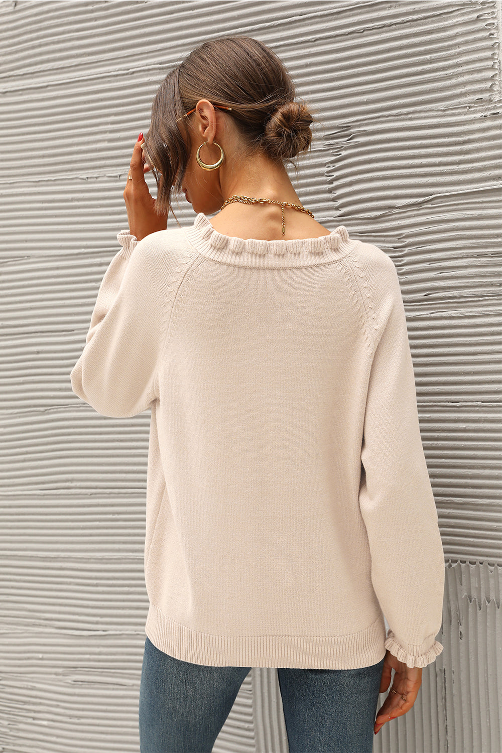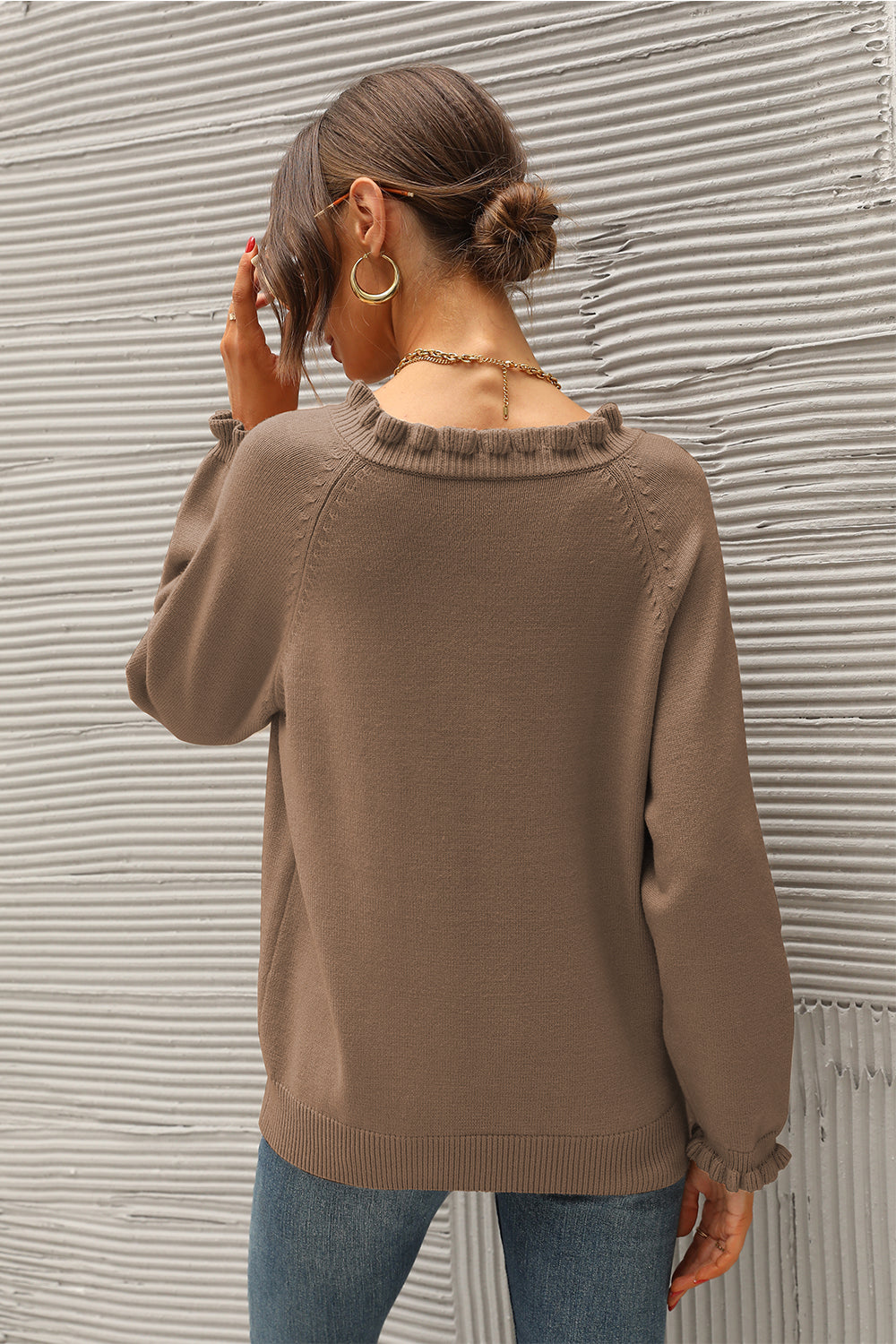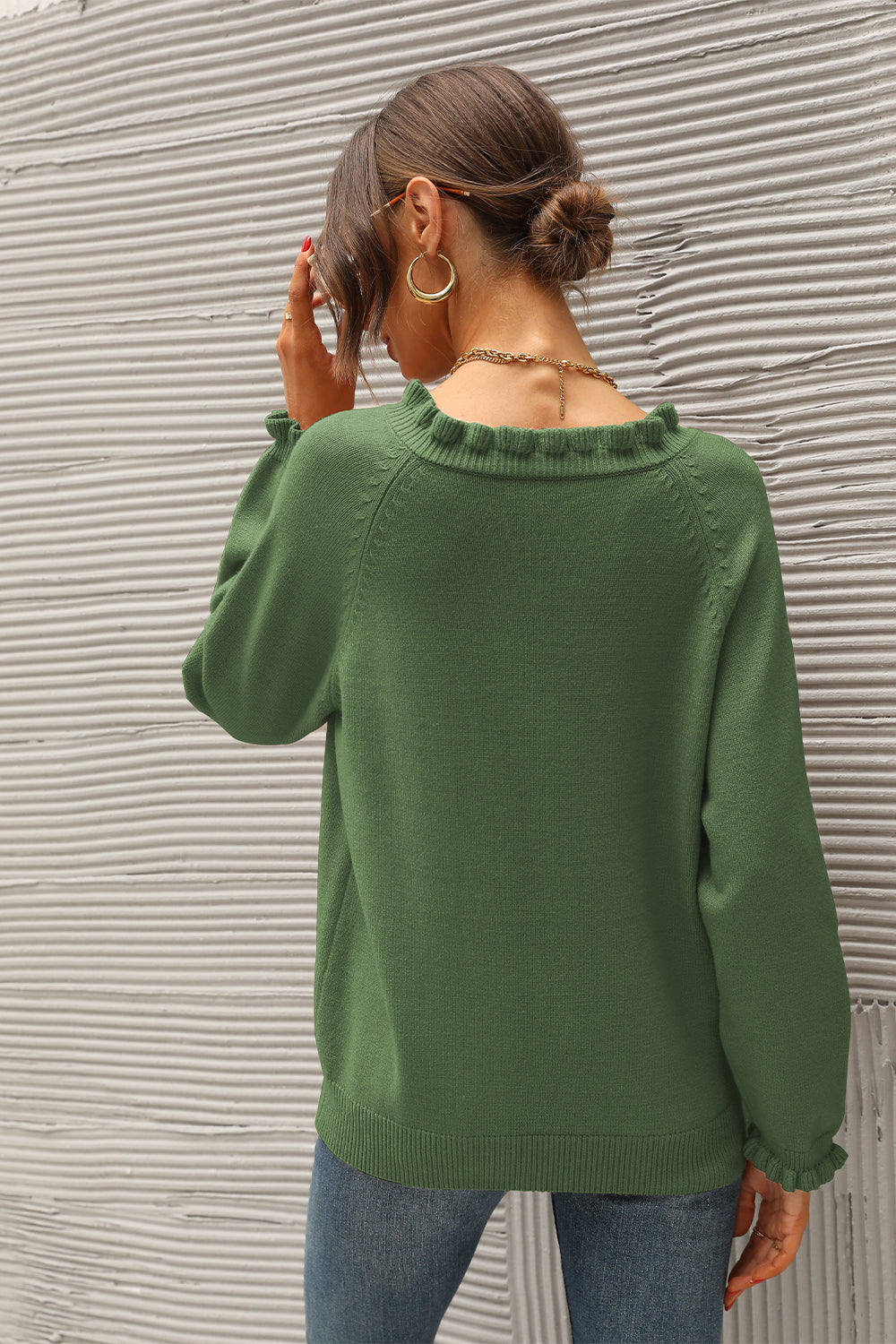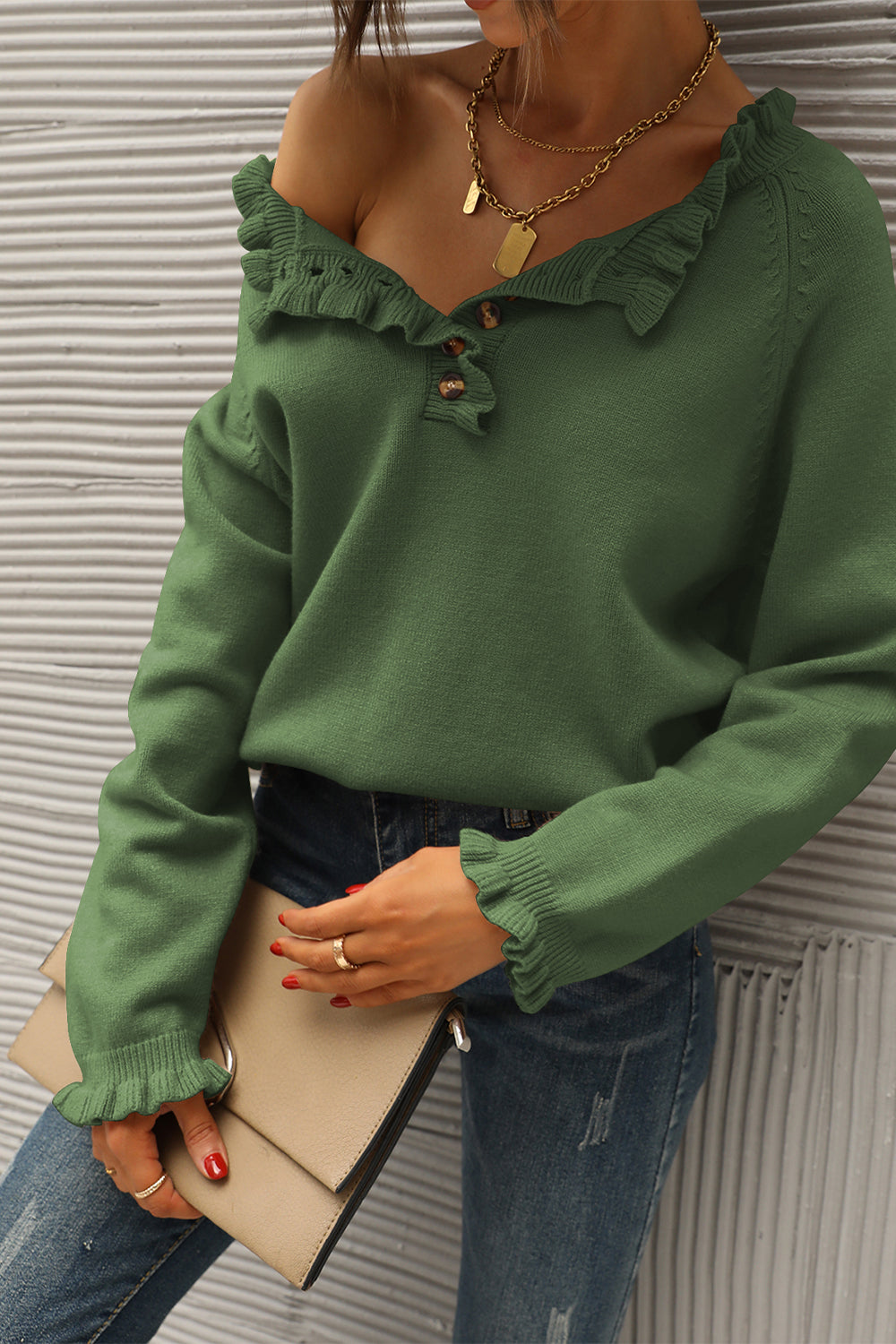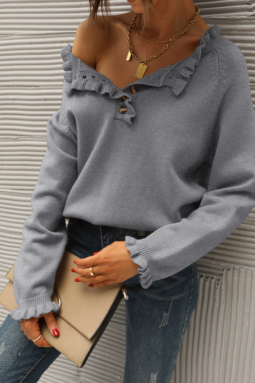 Long Sleeve Button Down Ruffle Knit Pullover Sweater Tops